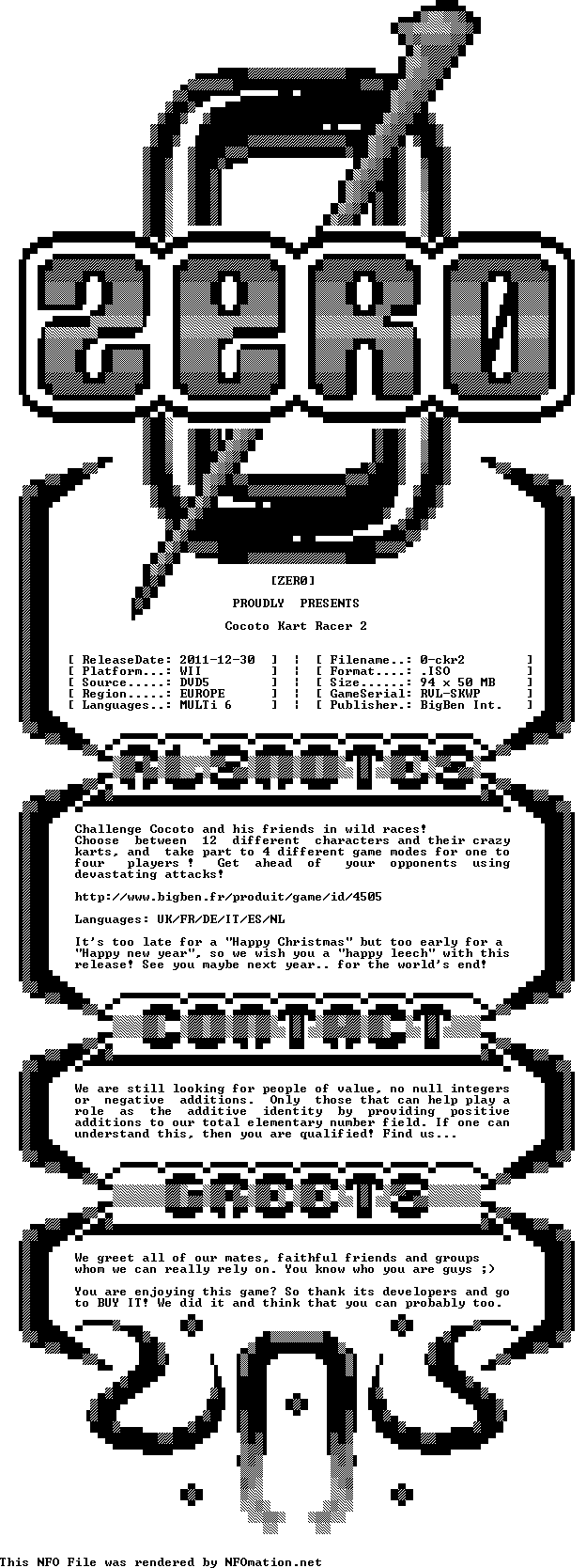 Challenge Cocoto and his friends in wild races. Choose between 12 different characters and their crazy karts, and take part to 4 different game modes for one to four players. Get ahead of your opponents using devastating attacks FileSonic http://www.filesonic.com/file/zQfF6cA