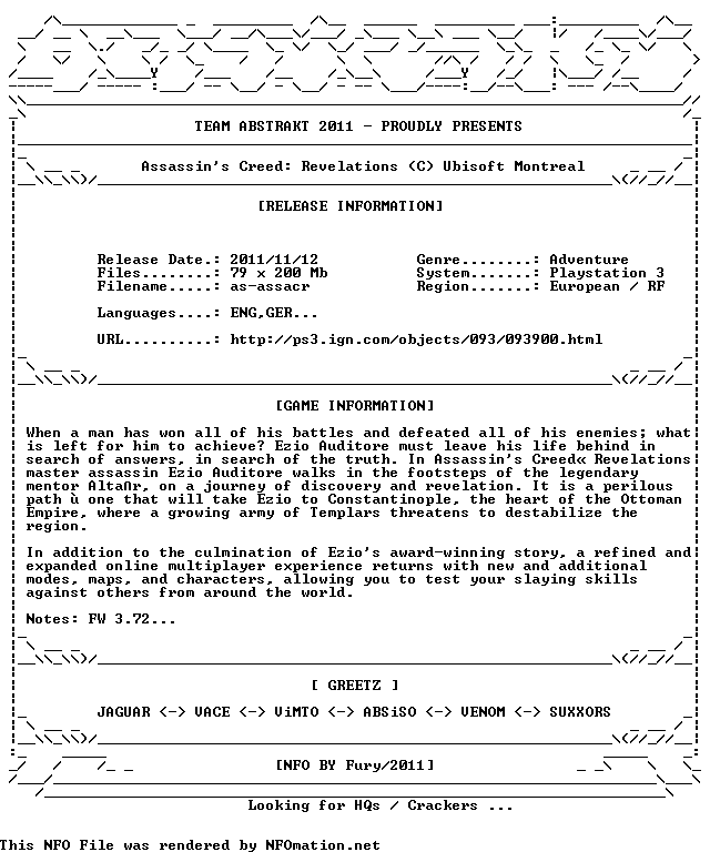 Assassin’s Creed Revelations presents the most immersive experience available in the series to date and the culmination of Ezio’s adventure. In Assassins Creed Revelations, master assassin Ezio Auditore walks in the footsteps of his legendary mentor, Altar, on a journey of discovery and revelation. It is a perilous path one that will take Ezio to Constantinople, the heart of the Ottoman Empire, where a growing army of Templars [...