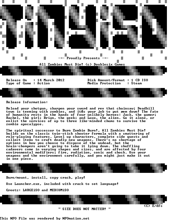 A Gamer, a Girl, a Mad Scientist and an Alien are all that stands between 6 billion zombies and the worlds supply of delicious, supple brains. All Zombies Must Die! drops up to four players into the town of Deadhill, where they must blast their way through ranks of brain hungry monsters with a variety of weaponry while completing quests served up by the game’s insane storyline. Savvy survivors will [...